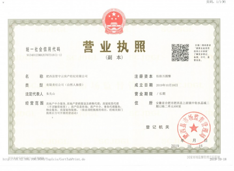 机构名称:肥西县管守云房产经纪有限公司